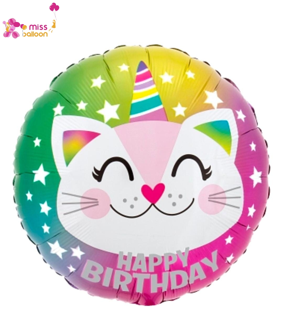 - 1pc x Caticorn Happy Birthday Foil Balloon (Helium/Air-Filled)