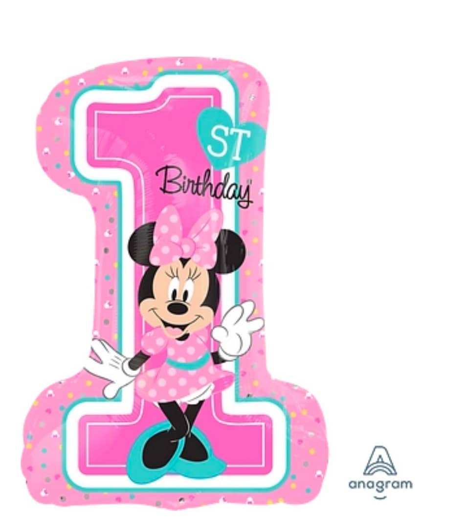 - 1pc x Minnie 1st Birthday Super Shape Foil Balloon (Helium/Air-Filled)