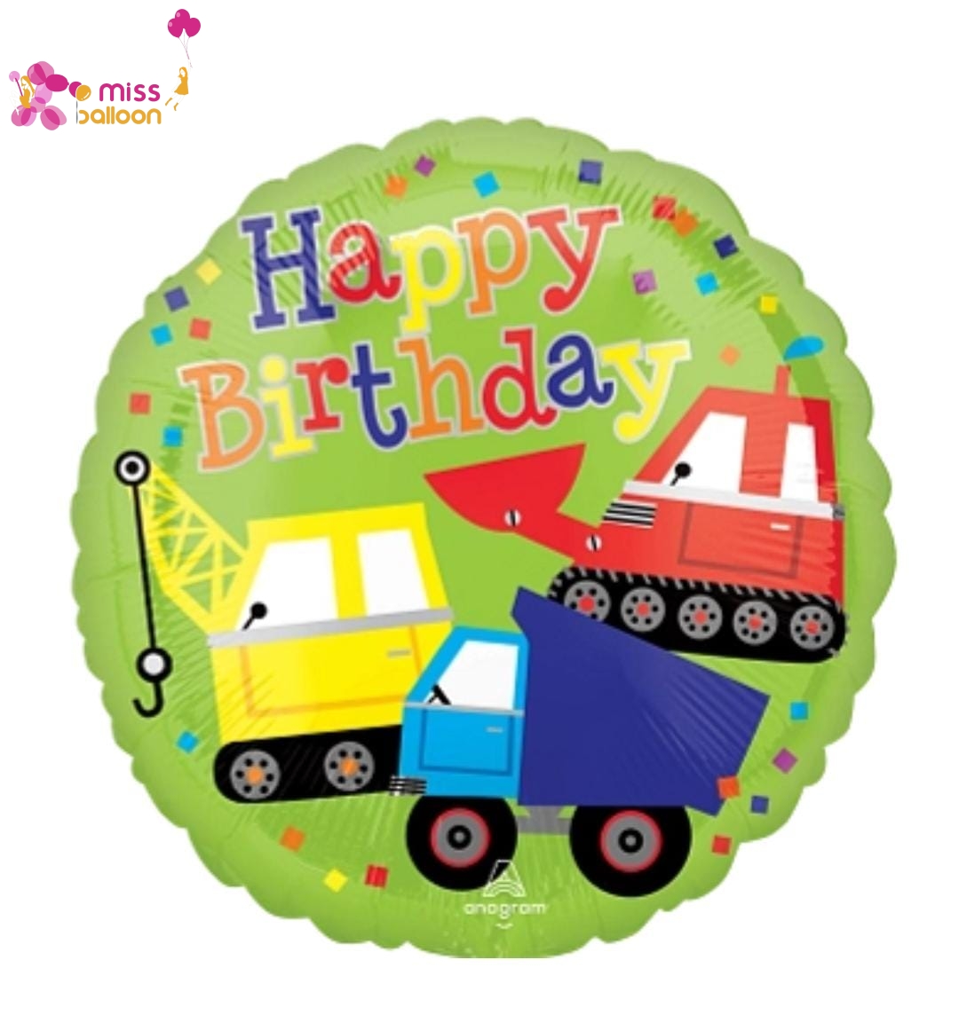 - 1pc x Trucks Happy Birthday Foil Balloon (Helium/Air-Filled)