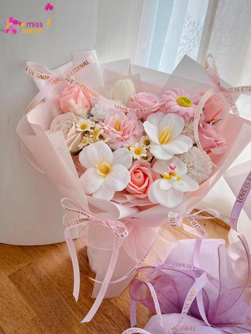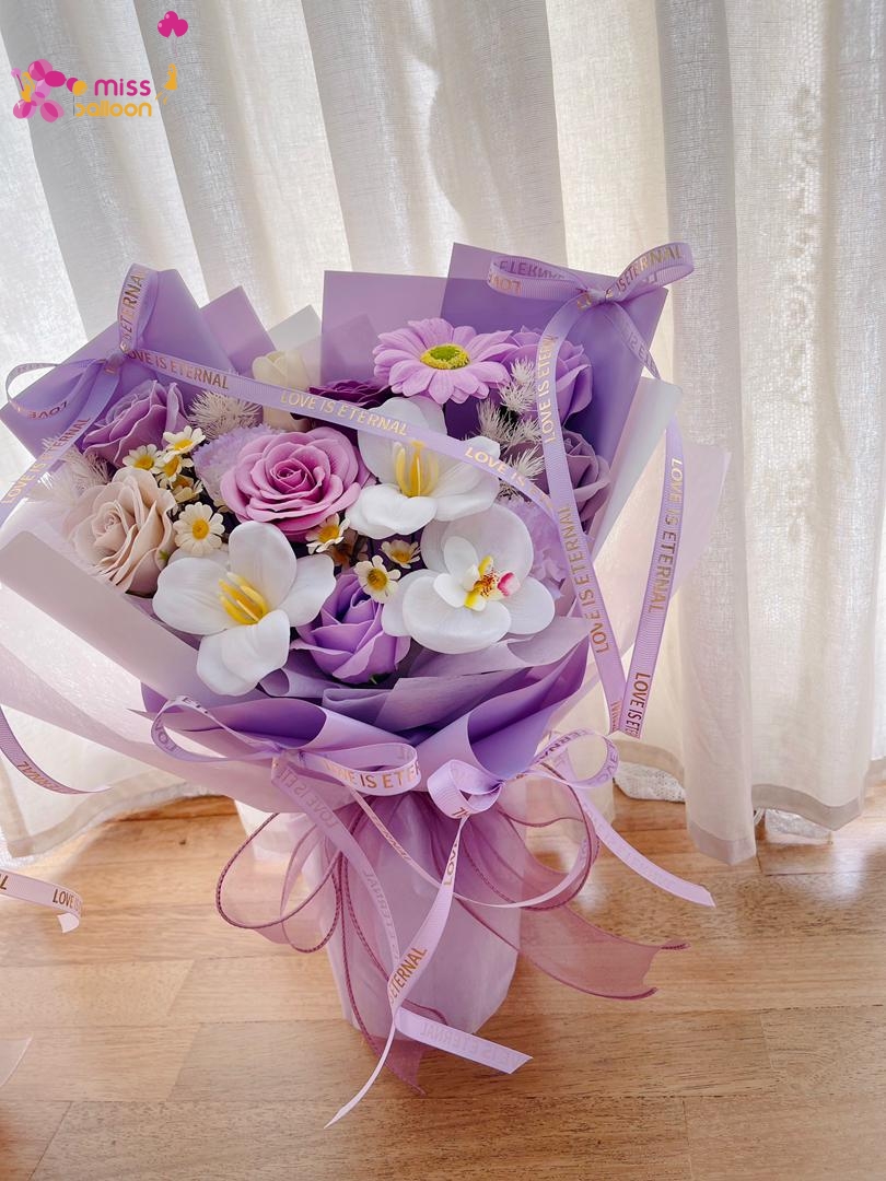 • Valentine’s Sweet Serenity Soap Rose Flower Bouquet